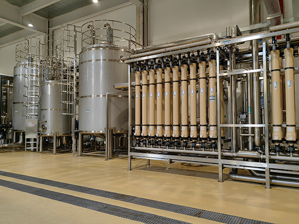 PASS至2009年二期項目開始,陸續(xù)為其配套(600m3/h)釀造、包裝水處理系統(tǒng)。水處理系統(tǒng)采用世界上最先進的膜處理工藝,全自動控制系統(tǒng),確保系統(tǒng)運行的安全、高效、健康、環(huán)保,最大程度的降低酒廠的水耗及能源消耗。